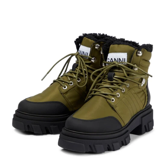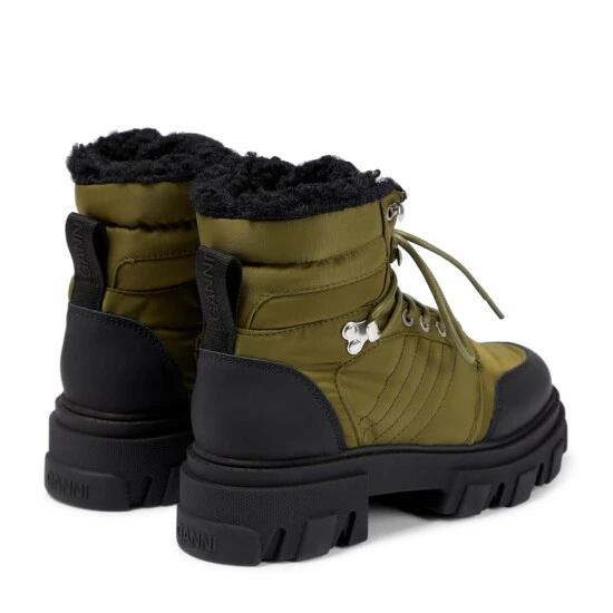 Ganni takes on the hiking boot trend by presenting these utilitarian-detailed ankle boots. An ultimate combination of style and comfort, this style will be your ultimate cold-weather companion thanks to its quilted inserts and rubber sole.
