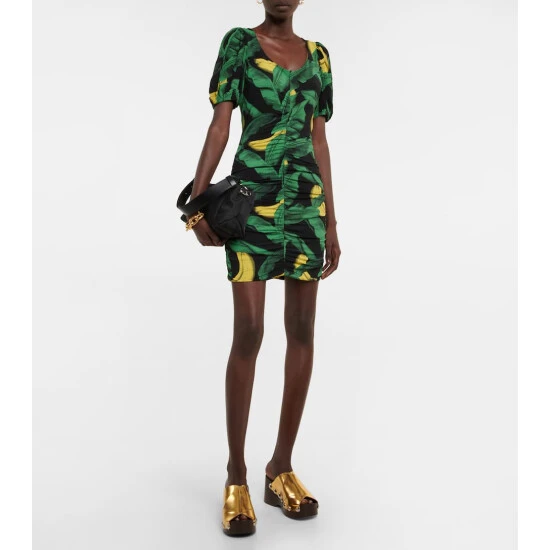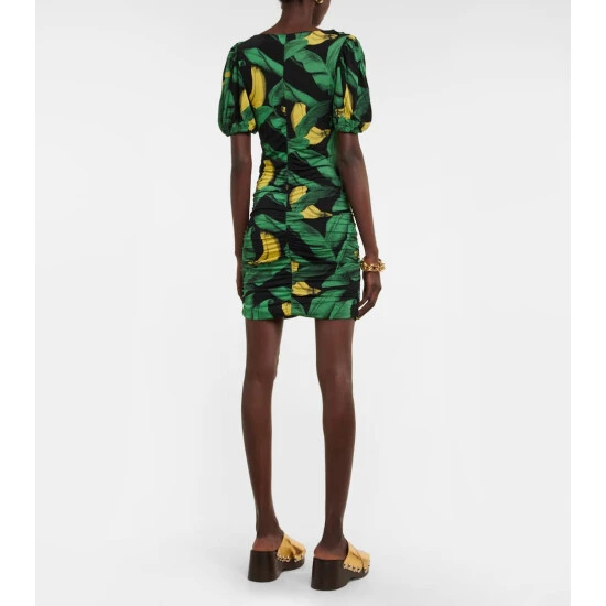 This ruched minidress from Ganni is the perfect addition to your getaway edit. It features an all-over tropical print and is defined by a fitted silhouette with puffed sleeves.